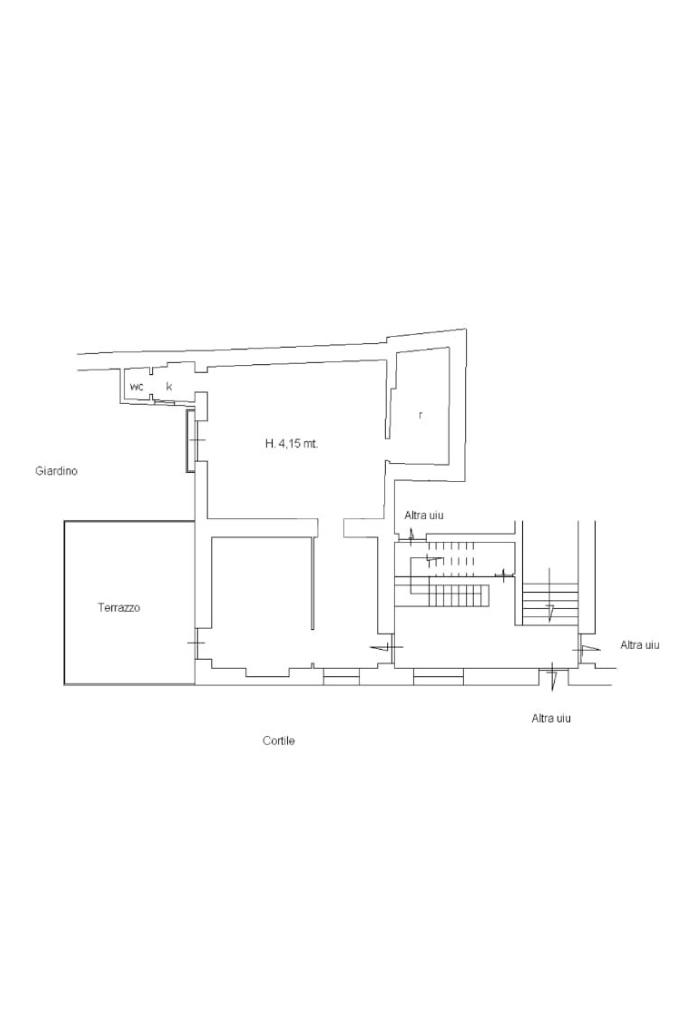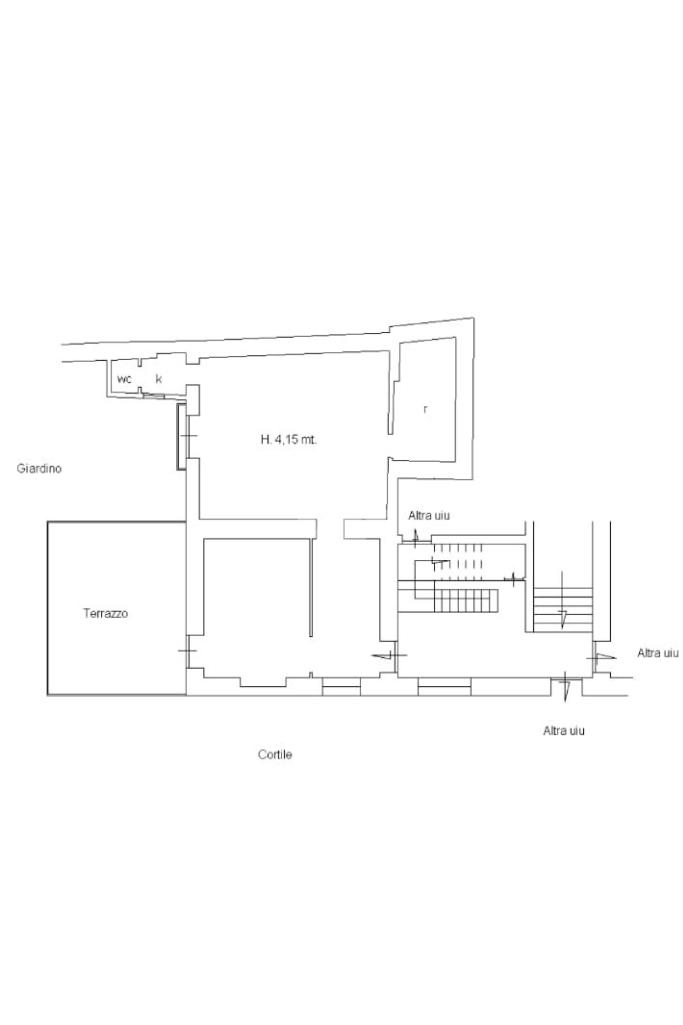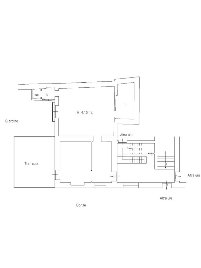- Ingresso in disimpegno con finestra e affaccio interno corte, diviso da un tramezzo che disimpegna la prima camera con accesso diretto sul terrazzo